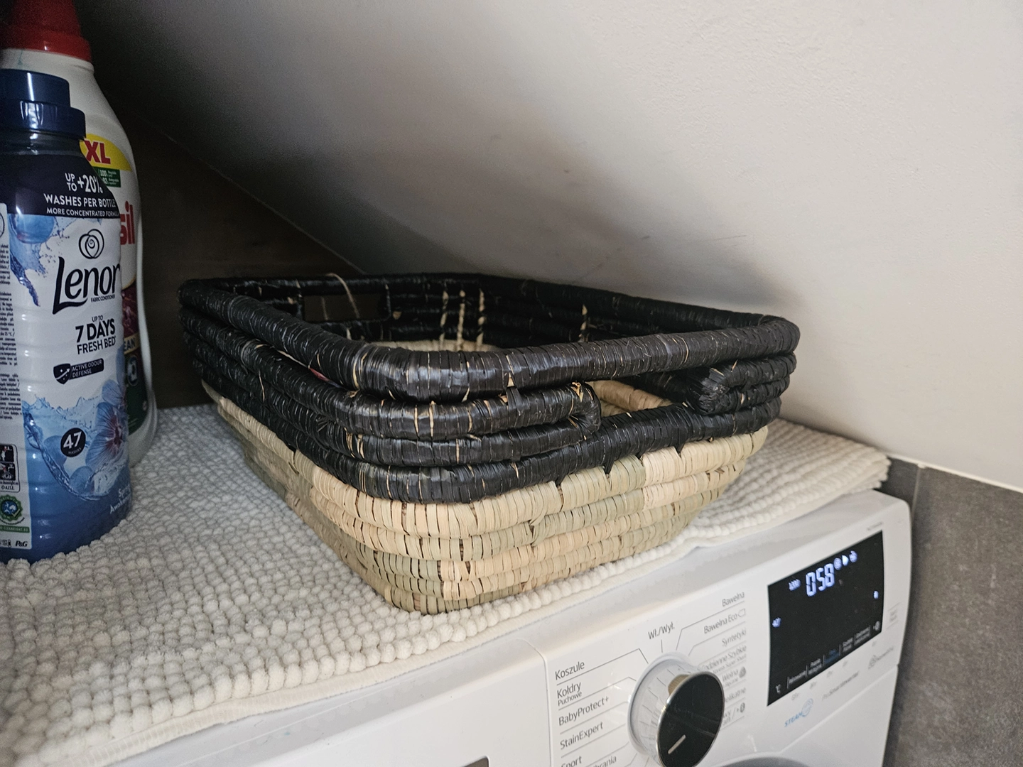 To naturalny efekt pracy rzemieślniczej i właściwości surowca, a nie wada produktu. Każdy kosz jest unikatowy – nie istnieją dwa identyczne modele.
