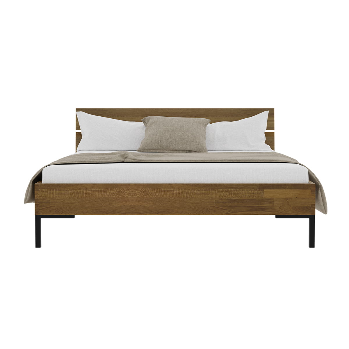 Łóżko dębowe z drewnianym zagłówkiem dzielonym 180x200 cm ciemny dąb YOKO Style