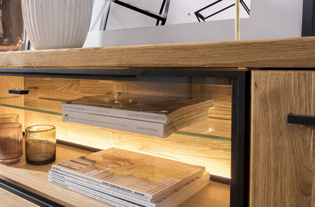 Wyposażenie salonu to niełatwe zadanie. Aranżacja powinna być nie tylko komfortowa, ale przy tym elegancka i spójna. W końcu w salonie spędzamy sporo czasu, to również pomieszczenie, w którym spotykamy się z gośćmi i znajomymi. Salon stanowi więc wizytówkę całego domu. To również funkcjonalne pomieszczenie: przechowujemy w nim dokumenty i niektóre przedmioty codziennego użytku. Dlatego komoda do salonu to niezbędny mebel. Sam w sobie jest niewielki, nie zajmie więc wiele miejsca. Za to pomieści całkiem sporo. Dębowa komoda do salonu z kolekcji Vivo to mebel, który pozwala na więcej. Dzięki dwóm pojemnym szufladom i szafkom, a także półce pod blatem daje możliwość przechowywania wielu rzeczy i zachowania przy tym porządku.