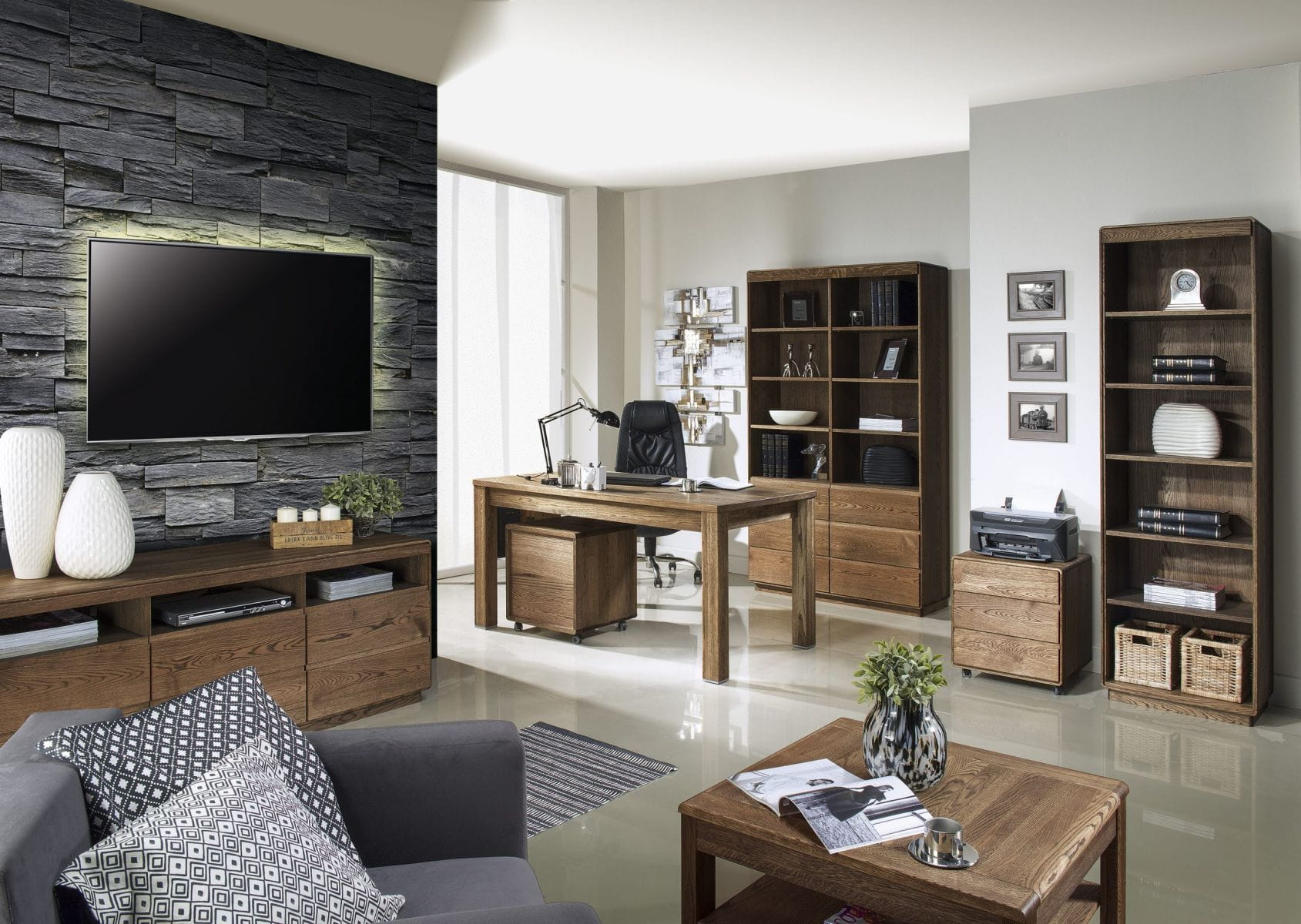 Przy urządzaniu salonu należy wziąć pod uwagę zarówno walory estetyczne jak i praktyczne aspekty takie jak funkcjonalność mebla. Na tych i kilku innych ważnych warunkach opierają się nasze decyzje. Warto zauważyć, że właśnie takie warunki jak trwałość, solidność i funkcjonalność spełniają dębowe meble do salonu i jadalni z kolekcji Altea. Wykorzystany do ich produkcji materiał, jakim jest drewno dębowe i elementy płyty meblowej fornirowanej oraz klasyczna forma sprawią, że pomieszczenie, w którym ustawiony zostanie kredens, komoda, witryna, szafka TV, ława, półka czy lustro wyda się elegancki i szykowny. Delikatnie szczotkowana struktura niepowtarzalnego drewna i gustowne olejowanie w kolorze palonego dębu nadają meblom estetycznego wyglądu. Do tego delikatne zaokrąglenia na rogach i subtelne oświetlenie półek wprowadzą odpowiedni klimat do twojego domu.