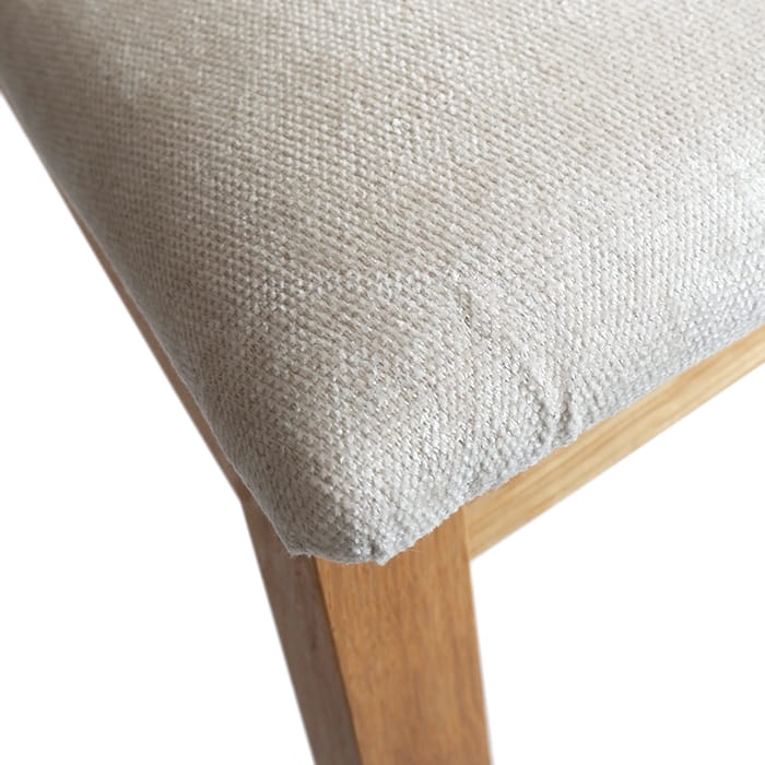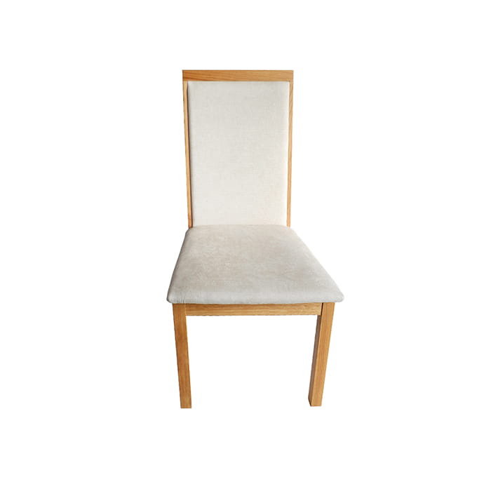 Krzesło powinno wpasowywać się w ogólny wystrój pomieszczenia w którym się znajduje. Powinno pasować do pozostałych mebli. Do kredensu, stołu czy witryny. Dlatego do oferty serii Altea dodano krzesła, które współgrają z pozostałymi meblami. Wszyscy wiemy, że krzesło to nie tylko trwały dąb, ale także tapicerka. Zaprezentowany delikatny odcień jasnego beżu idealnie współgra z strukturą drewna w naturalnym kolorze dębu. Wykorzystana do produkcji siedziska w prezentowanym krześle tkanina szelinowa jest mięciutka i przyjemna w dotyku. Jest wytrzymała na ścieranie (klasa odporności 40000 cykli) i nie mechaci się, warto takie parametry wziąć pod uwagę przy wyborze materiału. To jak wyprofilowane jest oparcie i jak zbudowane jest siedzisko ma też nie lada znaczenie. W krześle dębowym Altea siedzisko nieco wystaje poza ramę aby wygodniej spierać Wspaniałe drewno dębowe, jedynie olejowane dla utrzymania jego niepowtarzalnego naturalnego charakteru to dobry wybór.