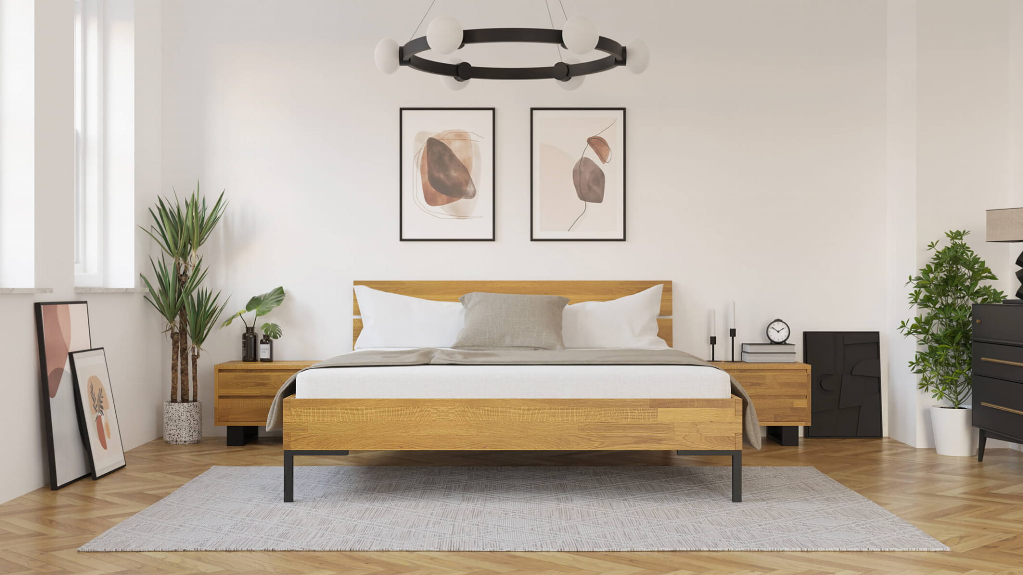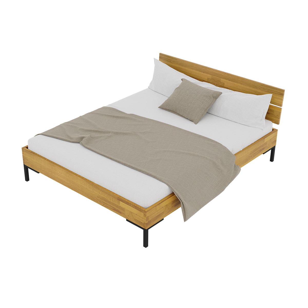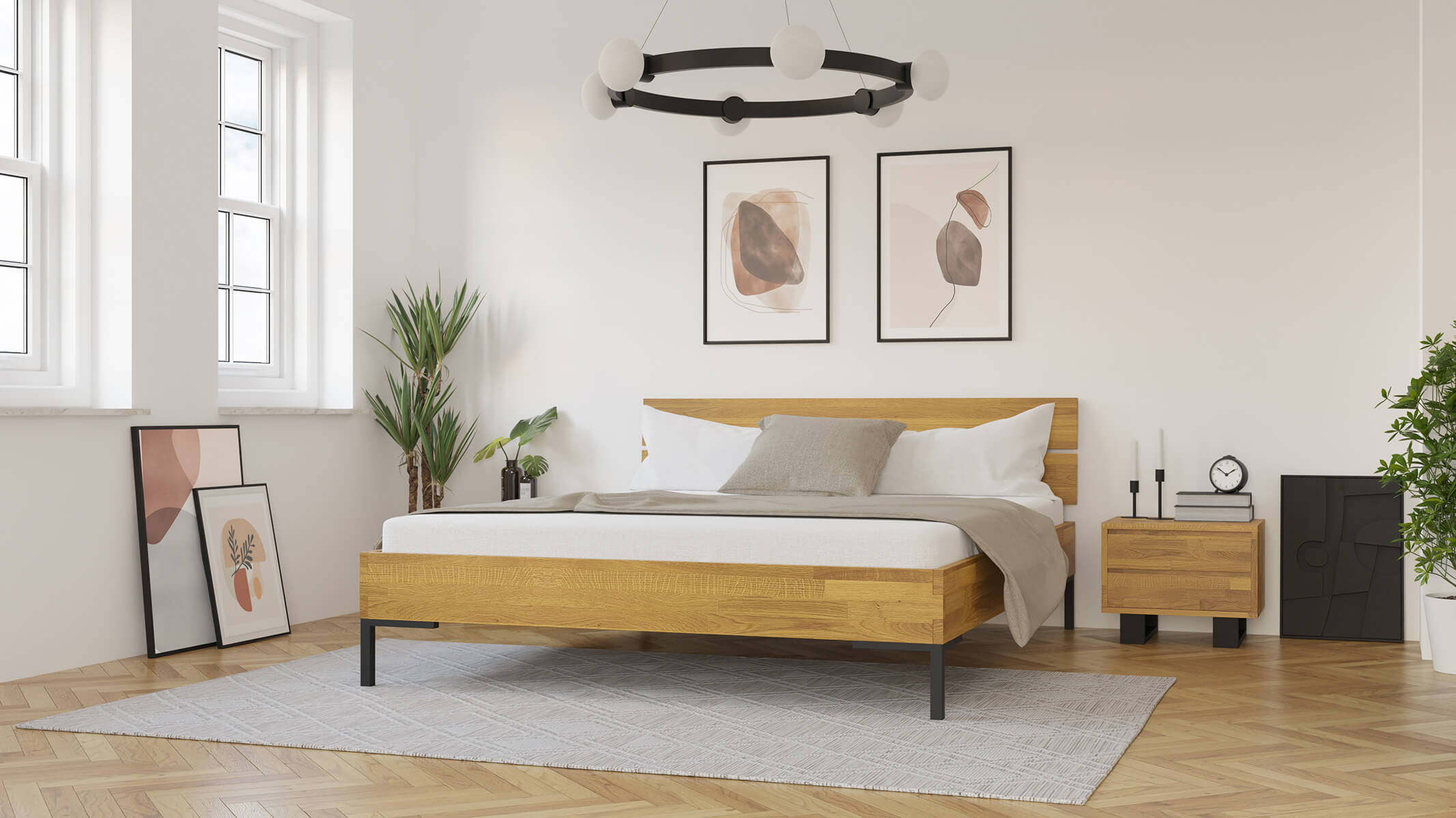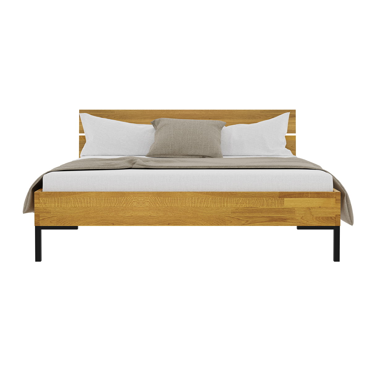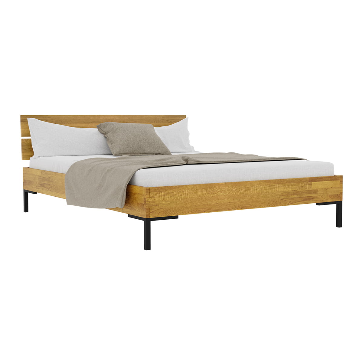 Sypialnia, a przede wszystkim centralny jej mebel jakim jest łóżko powinno spełniać wymagania postawione przez użytkownika. To w jaki sposób jest urządzony i w jakim stylu jest utrzymany ten pokój ma wpływ na nasze samopoczucie, a więc warto wybrać meble zgodne z oczekiwaniami. Dębowe łóżko Yoko 180x200 na pewno spełni te wymagania. Charakterystyczna prosta rama drewniana jedynie olejowana dla zachowania naturalnego wyglądu drewna i metalowe czarne nogi, styl sam w sobie. Łóżko drewniane o tak minimalistycznym i uniwersalnym wyglądzie zostało ozdobione pięknym dzielonym na dwie części zagłówkiem.