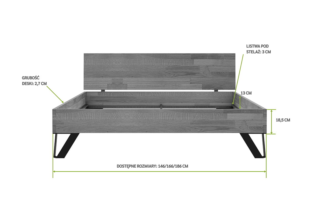 Warto podkreślić, że łóżko nie jest sprzedawane w komplecie ze stelażem i materacem. Zalecamy zapoznanie się z produktami powiązanymi, aby wybrać odpowiednie dodatki.