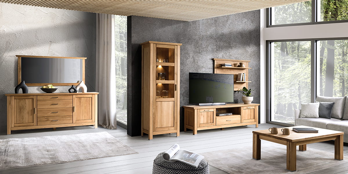 Materiał to solidne drewno dębowe, znane ze swojej trwałości i wytrzymałości, zapewniające długotrwałe użytkowanie. Zabudowany tył i dwie półki o różnych rozmiarach oferują elastyczne możliwości aranżacyjne oraz wystarczająco dużo miejsca na książki, dekoracje czy codzienne przedmioty. Elegancki i nowoczesny wygląd, który komplementuje różnorodne style dekoracyjne, od klasycznych po współczesne. Idealna zarówno do salonu, sypialni, jadalni jak i innych pomieszczeń w domu, gdzie elegancja i funkcjonalność idą w parze.