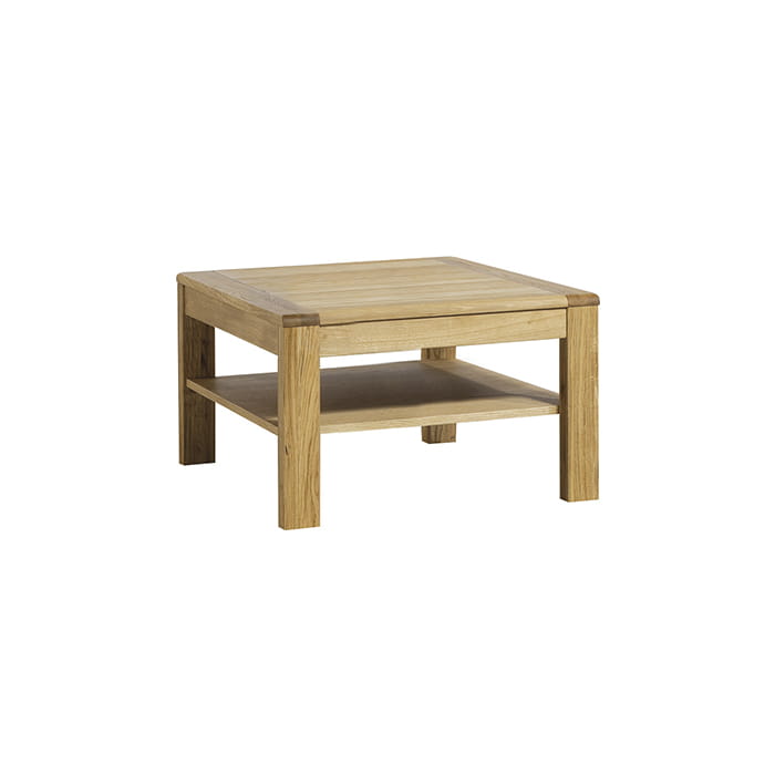 Stolik kawowy dębowy kwadratowy 75x75 naturalny dąb ława z półką Altea