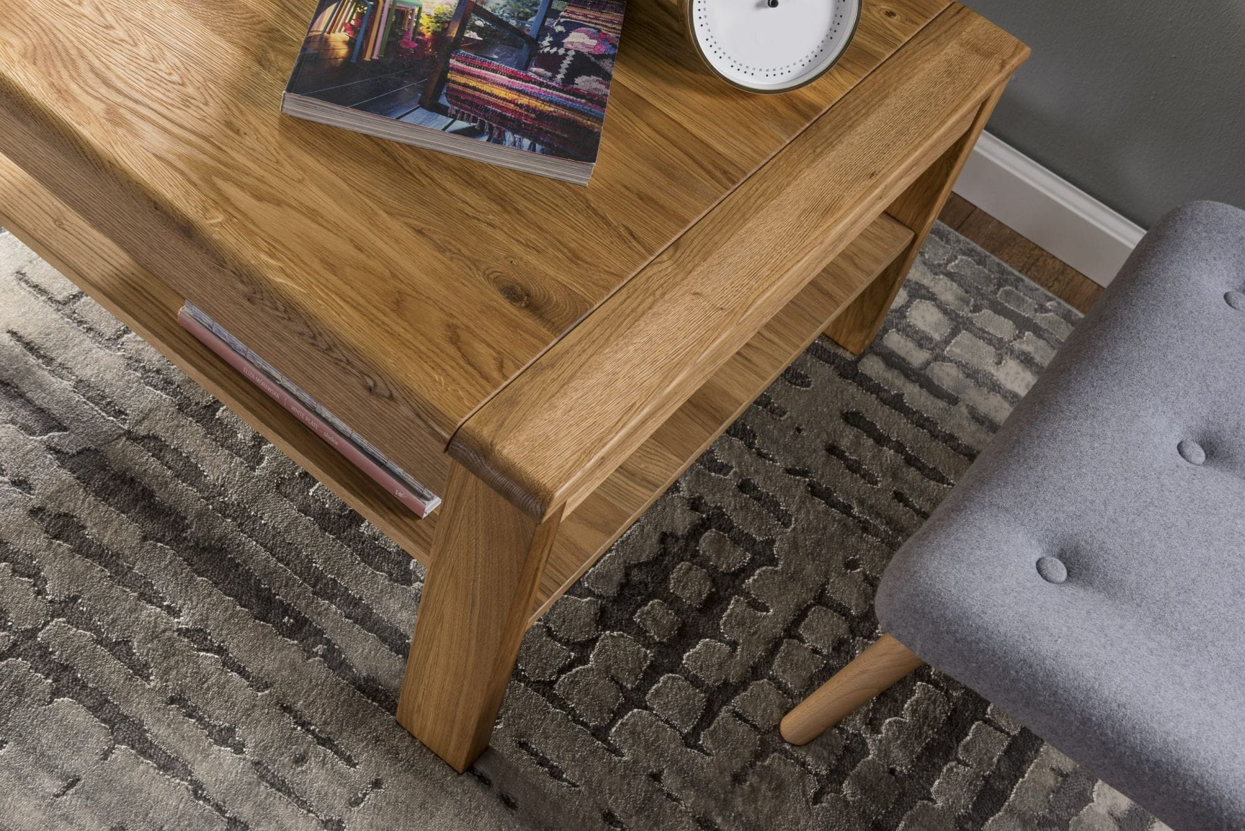 Pokój dzienny to miejsce, gdzie spędzamy bardzo dużo czasu, zapraszamy gości na spotkanie urodzinowe czy imieninowe, rodzinę na niedzielną kawę. Czas jaki w nim spędzamy powoduje, że powinno się wybierać meble zgodnie ze swoim gustem i upodobaniami. Subiektywny wybór i charakter mebla to ważne kwestie jakie należy brać pod uwagę. Ława z kolekcji Altea utrzymana jest w stylu klasycznym, nie znaczy to jednak, że tylko do takiego wnętrza będzie pasować. Naturalna kolorystyka i szczotkowana struktura to nawiązanie do rustykalnej konwencji, natomiast zaokrąglone rogi i nowatorskie nogi to powiew nowoczesności. Idealny mebel do saloniku przed sofę, z powodzeniem możesz na nią odłożyć kawę, gazetę czy też pilota podczas wieczornego relaksu przed telewizorem.
