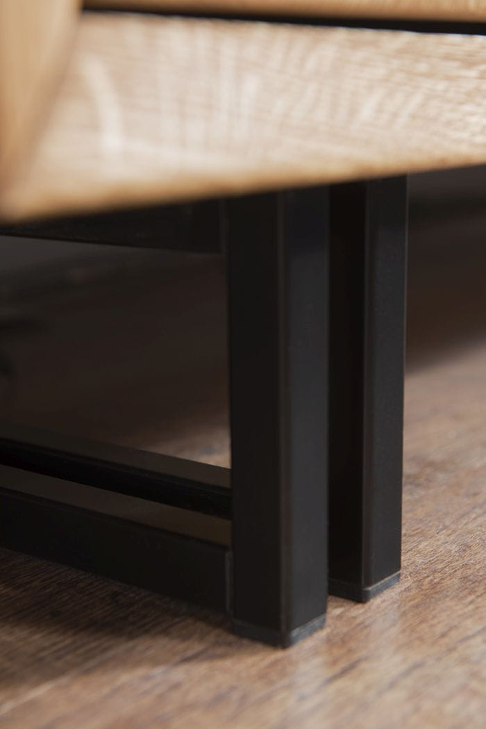Połączenie eleganckiego, szlachetnego drewna dębowego z czarnymi, metalowymi nóżkami i uchwytami tworzy piękną, unikalną kompozycję, wręcz idealną do pomieszczeń o industrialnym charakterze, co nie oznacza że mebel nie wpasuję się w ciepłe i klasyczne pomieszczenie. Dębowe meble bowiem swoją urodą zdobią salony już od wielu lat.