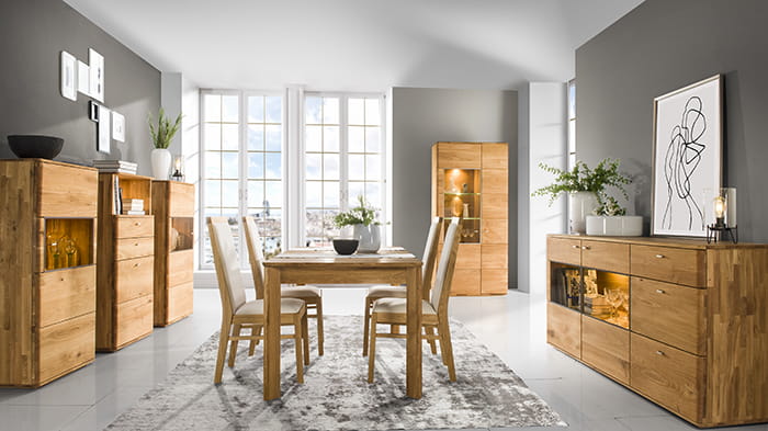 Wyjeżdżając na odpoczynek letni lub zimowy poszukujemy miejsc, gdzie złapiemy oddech i odpoczniemy od zgiełku pracy i natłoku obowiązków. Taką oazę można stworzyć także w domu, po powrocie zatopić się w wygodnej sofie i wyciągnąć nogi na szezlongu. Popijając kawę na podwieczorek i delektując się ciastkiem chcielibyśmy otaczać się meblami o naturalnym wyglądzie i delikatnej strukturze. Odnajdziecie ten naturalny look i styl w dębowych meblach z kolekcji Dakota. Drewniane meble w wielu odsłonach i różnorodnych rozmiarach pozwolą dopasować odpowiednie bryły do wymiarów pomieszczenia i zamysłu jaki obierzecie. Meble z tej serii wykonywane są z drewna dębowego szczotkowanego, zabieg ten uwydatnia naturalny rys słojów, różnorodność sęków oraz ich niepowtarzalną strukturę. Wykończone naturalnymi woskami i olejami sęki stanowią ozdobę mebli i tworzą ich styl, dlatego też nie podlegają reklamacji. Drewniane meble z kolekcji Dakota mają w swojej ofercie witryny dębowe, komody telewizyjne, ławy kawowe różnego rodzaju z szufladami i bez, regały w mniejszych i większych rozmiarach, przecudowne półki ścienne z dodatkiem szkła hartowanego, komody w wielu odsłonach, kredensy, stół i krzesło. Pełne wyposażenie jadalni, salonu, gabinetu i pokoju dziennego. A nawet sypialni i przedpokoju, gdyż w tym samym stylu utrzymana i dopasowana do kolekcji Dakota jest kolekcja Orio.