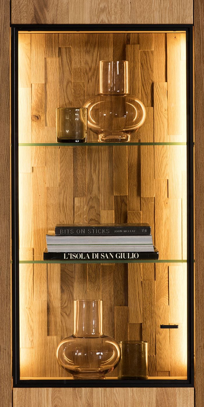 Witryna dębowa wąska przeszklona nowoczesna dąb naturalny Vivo 2P