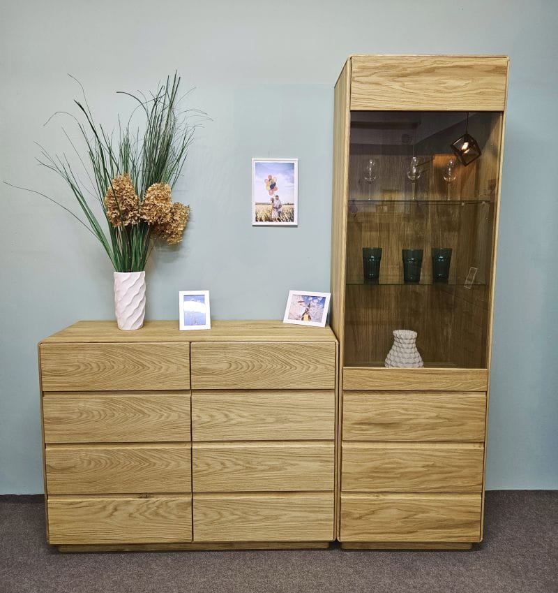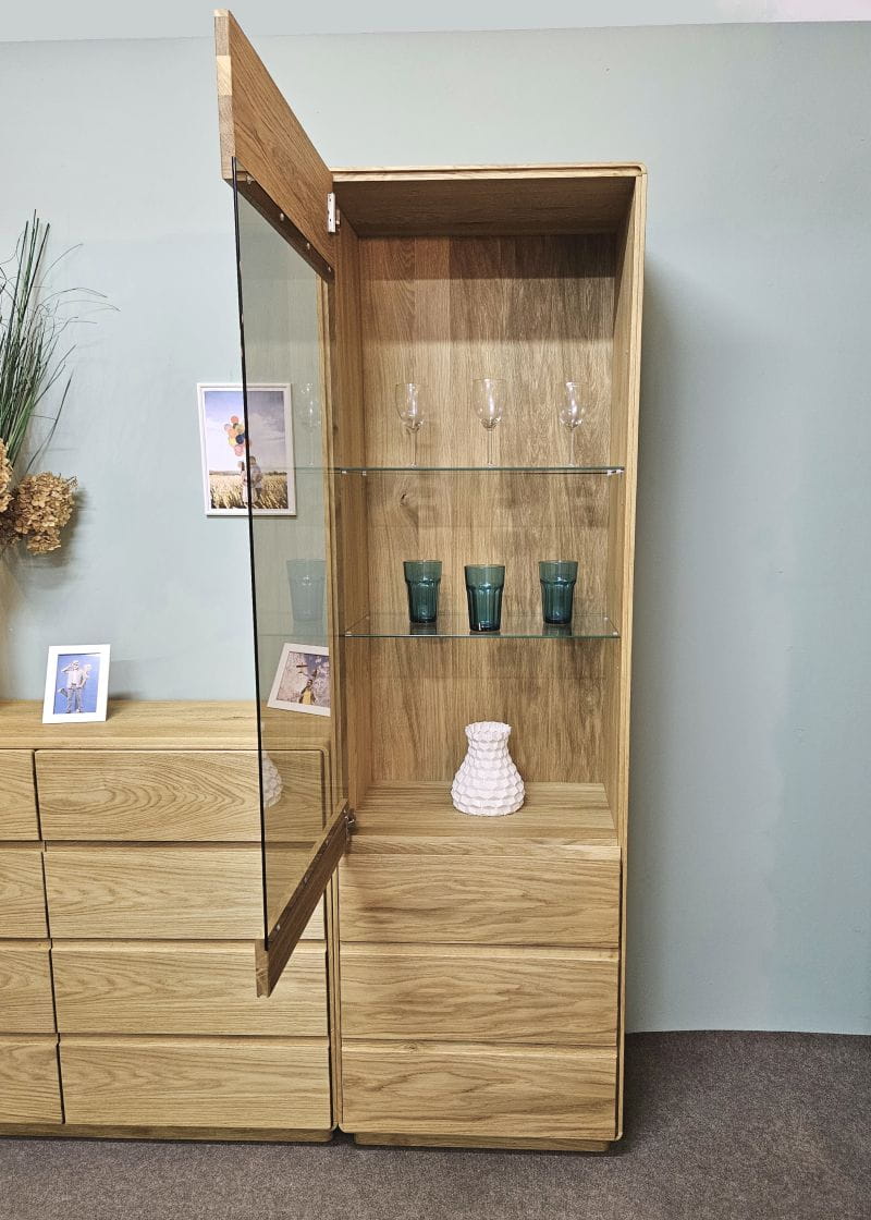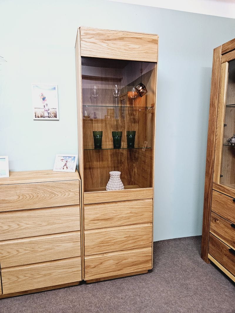 Witryna dębowa wysoka nowoczesna przeszklona wąska dąb naturalny Altea